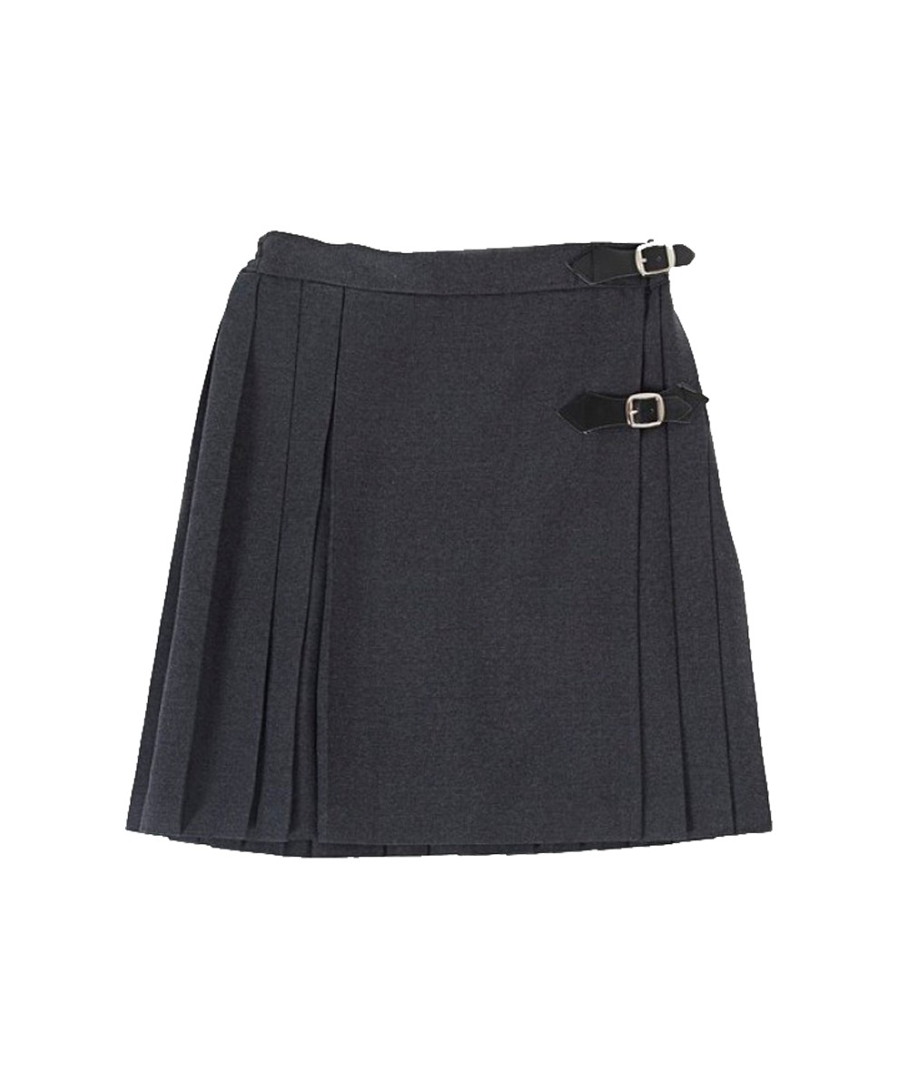 Falda de frente liso y resto con tablas planchadas al fuego, color gris.