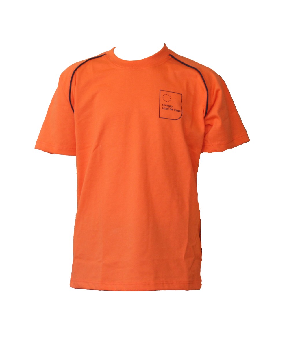 Camiseta de algodón color naranja con vivo en azul marino en las mangas